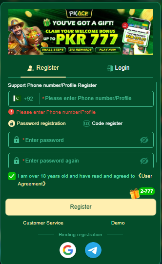 Registering on PKACE Game is very simple. Just follow these steps: